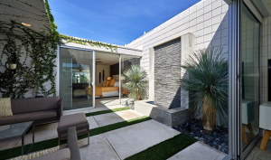 Consider the “Q.” As in Quintessential. Quality. And, most relevantly, as in A. Quincy Jones, the seminal midcentury architect best known for designing Sunnylands, the storied Annenberg Estate in Rancho Mirage. He is also the architect of the unique 30 unit enclave known as Country Club Estates of Palm Springs. It is the desert’s only multi-residential development bearing his imprimatur, conferring on it a distinction of rare merit. Each home in this distinctive community pays tribute to the design features for which A. Quincy Jones is known: clerestory windows, an inside-outside aesthetic heightened by the interior atriums and their walls of glass that invite the outside in. Gracious, spacious rooms feature his widespread use of stacked, square masonry blocks. True to his appreciation of lovely living, the complex is architectured on four acres that allow for shaded walkways, expanses of greenery and an unobstructed view to the beloved San Jacinto Mountains.